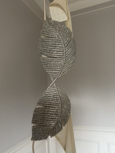 A whisper against the skin, the Radiant Leaf Bralette is crafted from fine mesh and traced with rhinestones in a delicate foliage motif. Each crystal catches the light just enough—never too much, never too little—creating a quiet glow that moves with you.